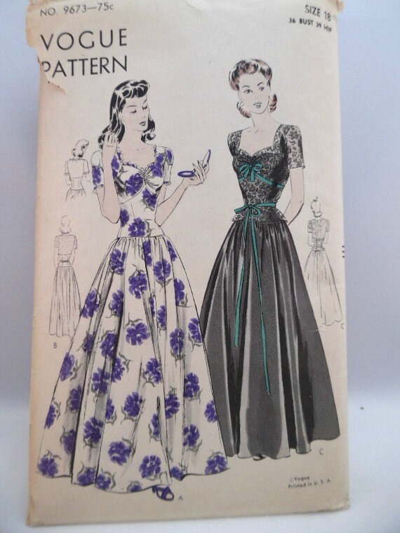 Vintage 40 S Vogue 9673 Sewing Pattern Evening Full Skirt Etsy Uk